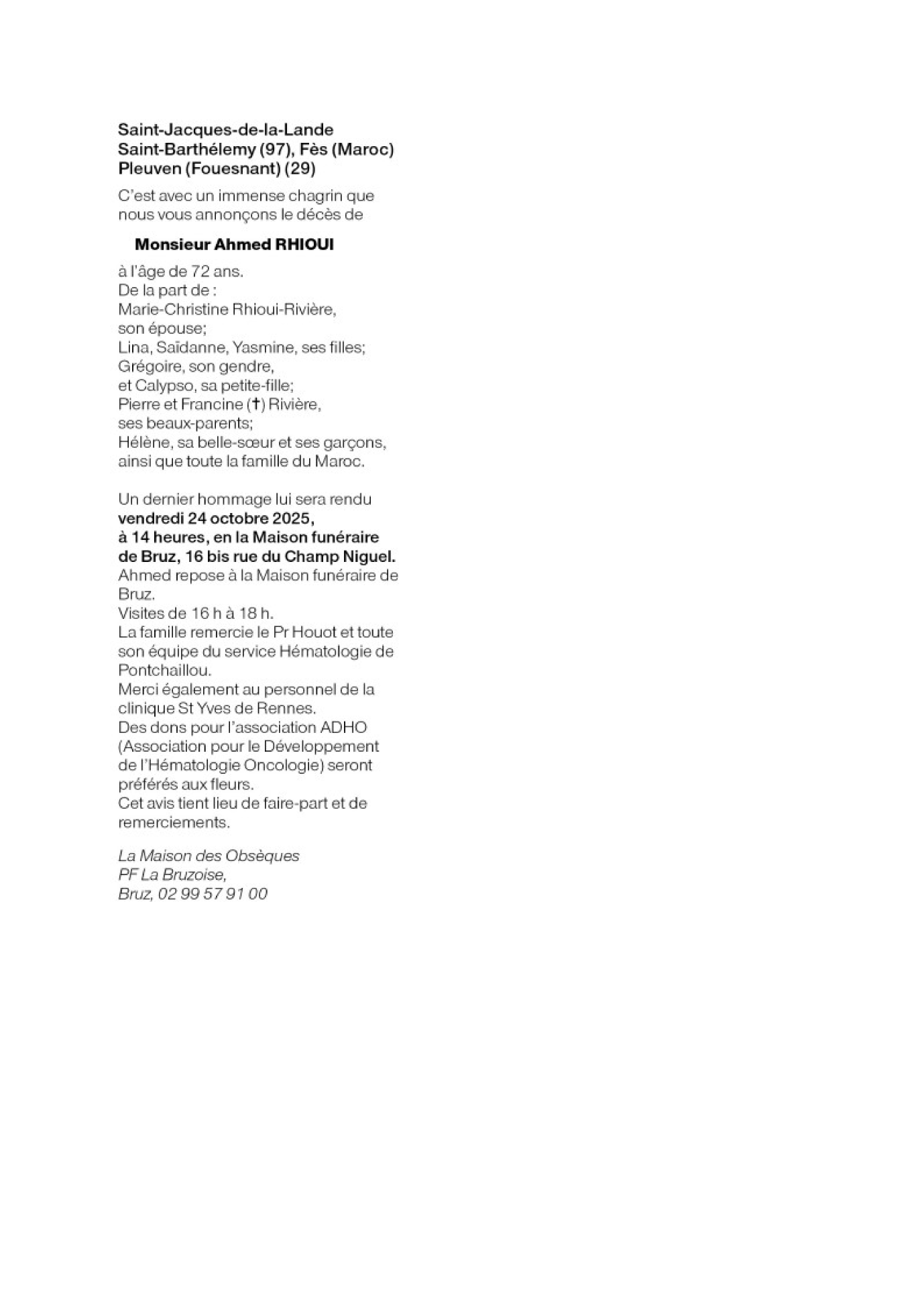Décédé à Rennes (35000, France) le vendredi 17 octobre 2025 à l'âge de 72 ans