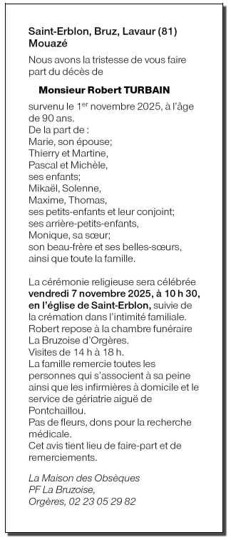 Décédé à Rennes (35000, France) le samedi 1 novembre 2025 à l'âge de 90 ans
