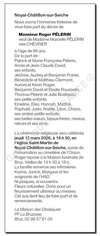 Décédé à Noyal-Châtillon-sur-Seiche (35230, France) le samedi 7 mars 2026 à l'âge de 96 ans