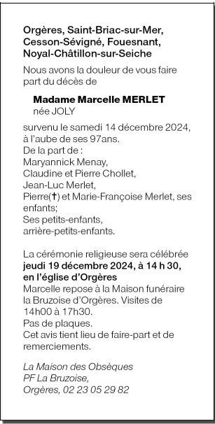 Décédée à Saint-Briac-sur-Mer (35800, France) le samedi 14 décembre 2024 à l'âge de 96 ans