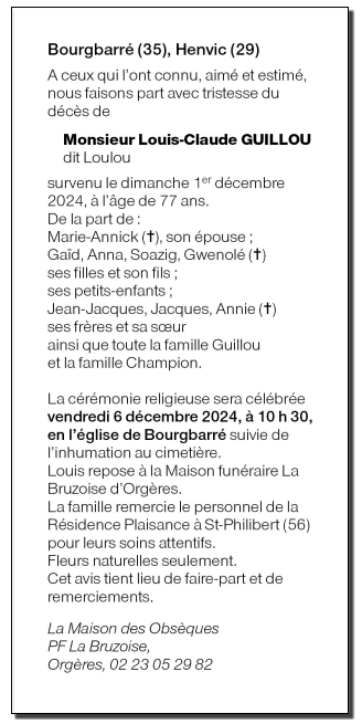 Veuf de Madame Marie-Annick GUILLOU