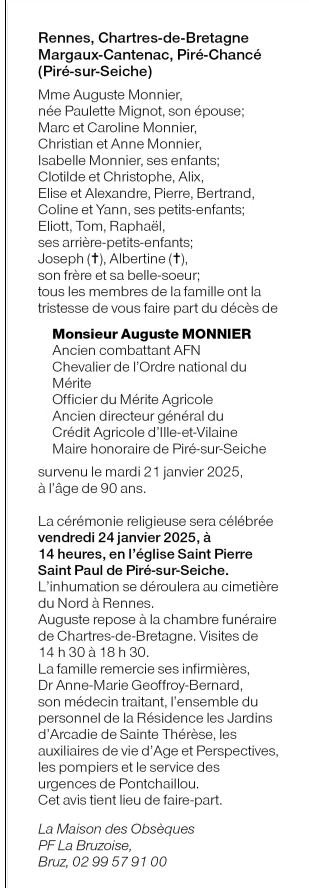 Décédé à Rennes (35000, France) le mardi 21 janvier 2025 à l'âge de 90 ans