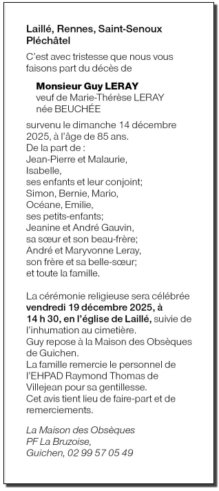 Décédé à Rennes (35000, France) le dimanche 14 décembre 2025 à l'âge de 85 ans