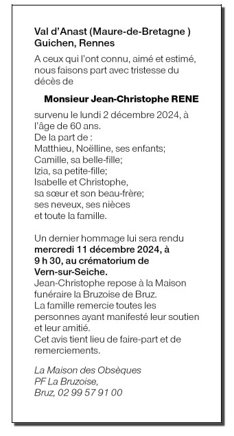Décédé à Flers (61100, France) le lundi 2 décembre 2024 à l'âge de 60 ans