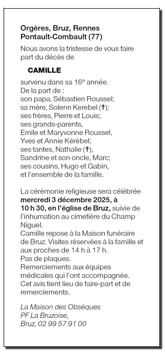 Décédée à Orgères (35230, France) le samedi 29 novembre 2025 à l'âge de 15 ans