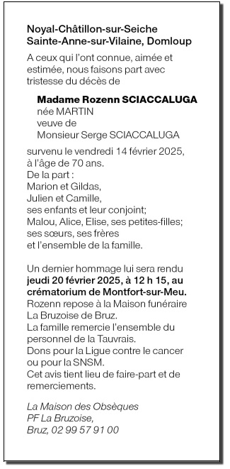 Madame Rozenn SCIACCALUGA née MARTIN