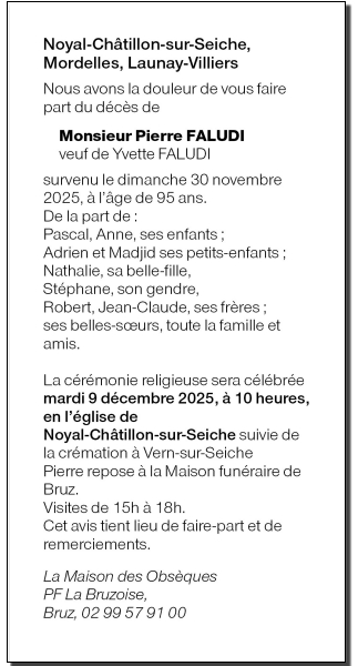 Décédé à Noyal-Châtillon-sur-Seiche (35230, France) le dimanche 30 novembre 2025 à l'âge de 95 ans